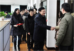 2013年2月19日,公司全体员工迎来了春节长假后的第一个工作日。上午10点整,公司党委书记、总经理万军率公司领导带着新春的祝福和问候,逐一走访公司各个楼层、办公室,向公司全体员工拜年,万总代表公司领导感谢大家在过去的一年里为公司发展做出的贡献,祝福全体员工新年幸福快乐。 万总一行随后还逐一走访了公司下属和关联企业华建监理、拜司特公司,向大家拜年。