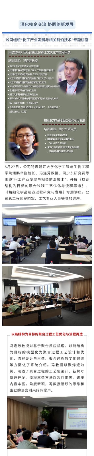 深化校企交流 协同创新发展——公司组织“化工产业发展与相关前沿技术”专题讲座